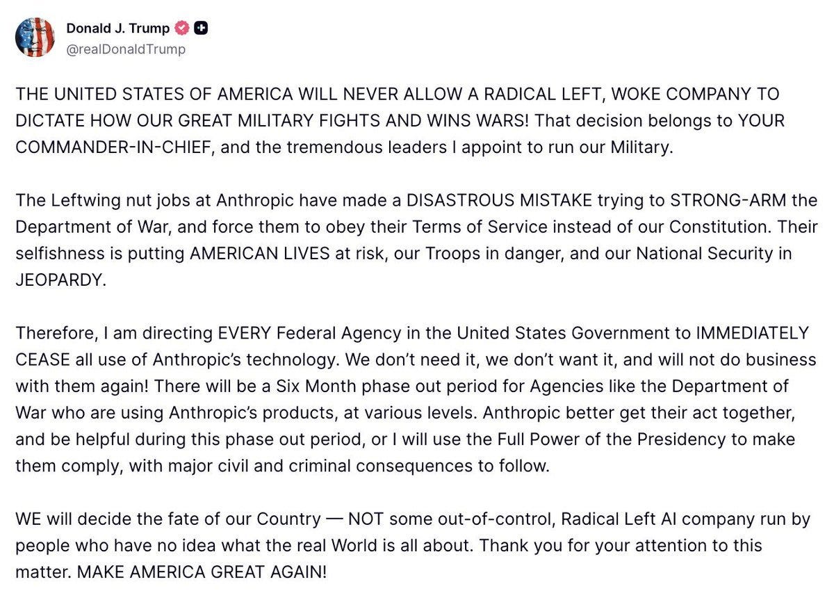 Como castigo a los de Anthropic, Trump les ha tildado de “compañía woke de extrema izquierda”, y ordenó el pasado viernes 27 de febrero a todas las agencias federales que dejasen de utilizar su tecnología en un plazo de seis meses, con el daño económico que eso implica. Asimismo, el secretario de Defensa Pete Hegseth ha calificado a la compañía de “riesgo de cadena de suministro para la seguridad nacional”, una acusación bastante grave y reservada para empresas como la china Huawei.