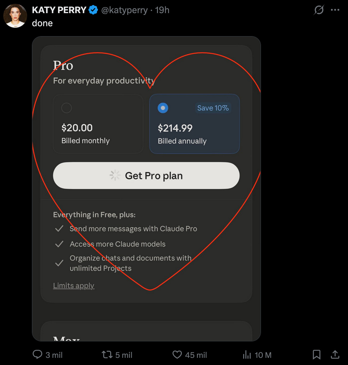 Así pues, el drama está servido e incluso figuras de la cultura pop, como Katy Perry, han reaccionado mostrando su apoyo a Anthropic. En concreto, la cantante compartió una foto en X mostrando que se desuscribía de ChatGPT y pasaba a suscribirse a Claude. Es probable por tanto que OpenAI sufra un boicot y que esta colaboración con el Pentágono le cause una caída de suscripciones.