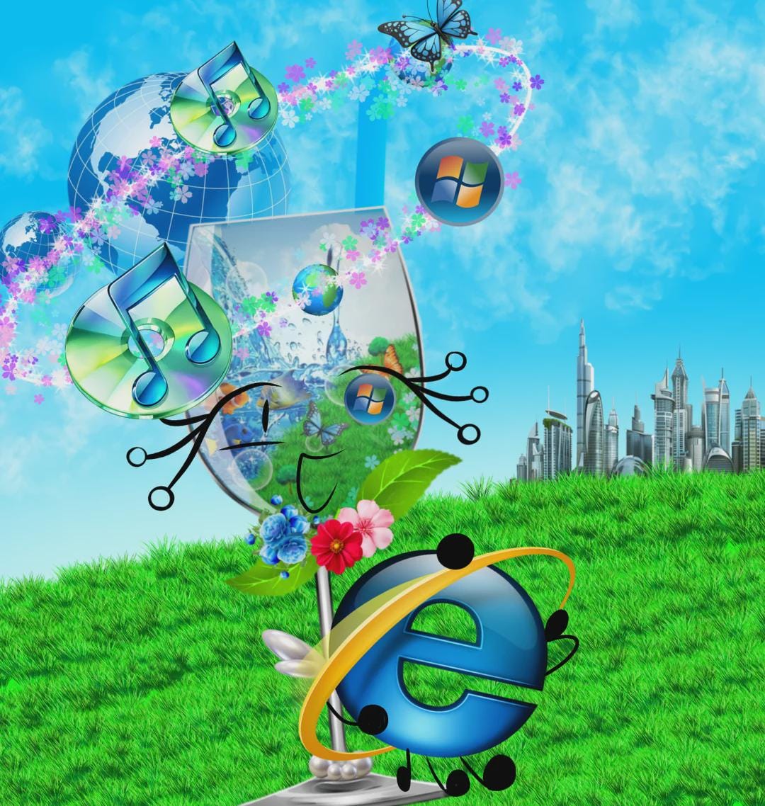 A esto, añado yo ahora, también se suma que aunque la naturaleza protagoniza esta estética, se trata de una naturaleza extremadamente limpia, estérilizada, y saturada a un nivel artificial (recordemos el intenso verde y azul del fondo de pantalla de Windows, tonalidades que muy rara vez uno encuentra en el campo de la vida real). Es como si entrásemos en una clínica dental en la que hay pintados peces y hierba fluorescente en la pared. Nos quiere transmitir paz, pese a estar en un entorno de tecnología incisiva y penetrante. Asimismo, la presencia de formas geométricas perfectas, hechas por ordenador, muestra un entorno artificial robótico y calculado cuyo contraste con elementos naturales puede resultar perturbador.