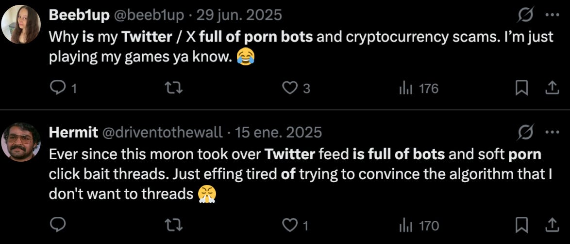 También encontramos vídeos en YouTube3 cuestionando la situación, y multitud de posts en X atestiguando una invasión de contenidos softporns en los feeds.