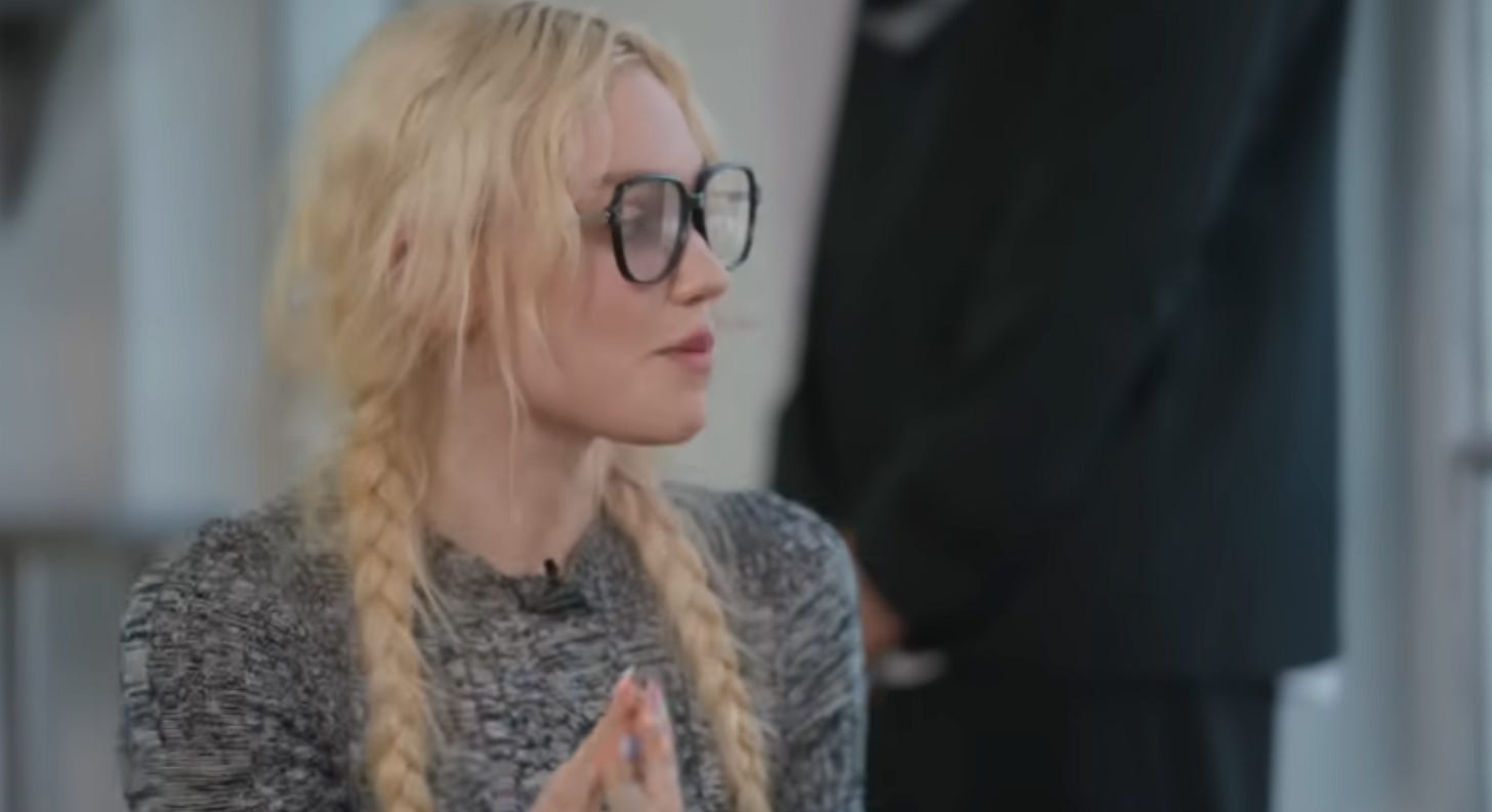 En varios momentos de la entrevista, vemos que Grimes pide la ayuda de este extraño guardaespaldas psicológico para que le diga qué debería decir respecto a un tema u otro, o que le asesore sobre si un comentario es oportuno o no. El resultado es bastante gracioso, ya que es como si la cantante no pudiera pensar por sí misma a veces.