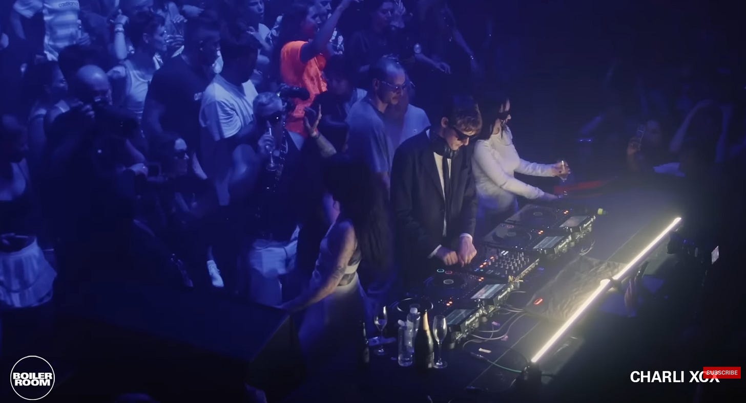 Así todo, y pese a la errónea generalización que implica el uso del concepto chamánico, podemos pensar que la fiesta conducida por el DJ sirve como lugar de encuentro de unas personas dañadas por la ausencia de comunidad y propósito que genera el sistema. Siendo Brat, de Charli XCX, álbum inspirado en la cultura club, uno de los álbumes más populares del 2024, vemos que la cultura rave puede estar experimentando un revival, aunque a riesgo de quedarse en solo un trend comercial más.