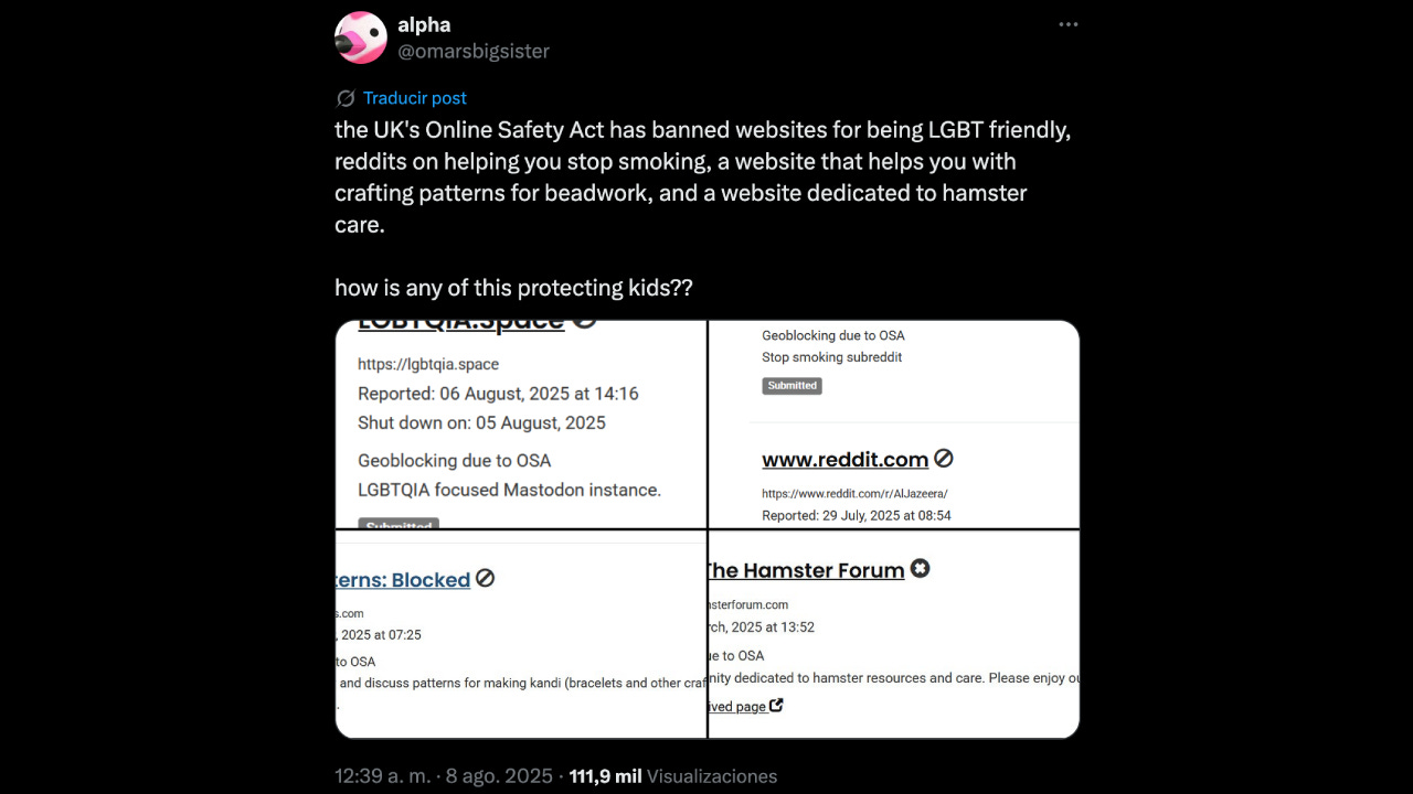 “Americans, Be Warned: Lessons From Reddit’s Chaotic UK Age Verification Rollout”, en https://www.eff.org/deeplinks/2025/08/americans-be-warned-lessons-reddits-chaotic-uk-age-verification-rollout.