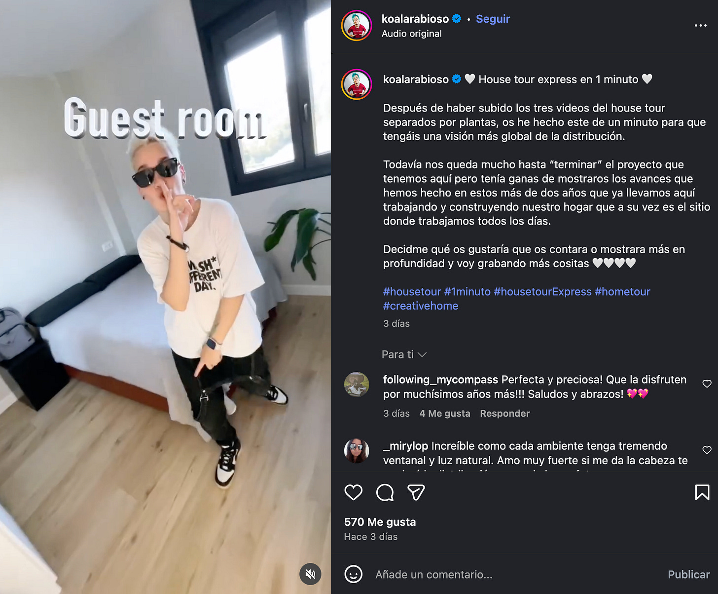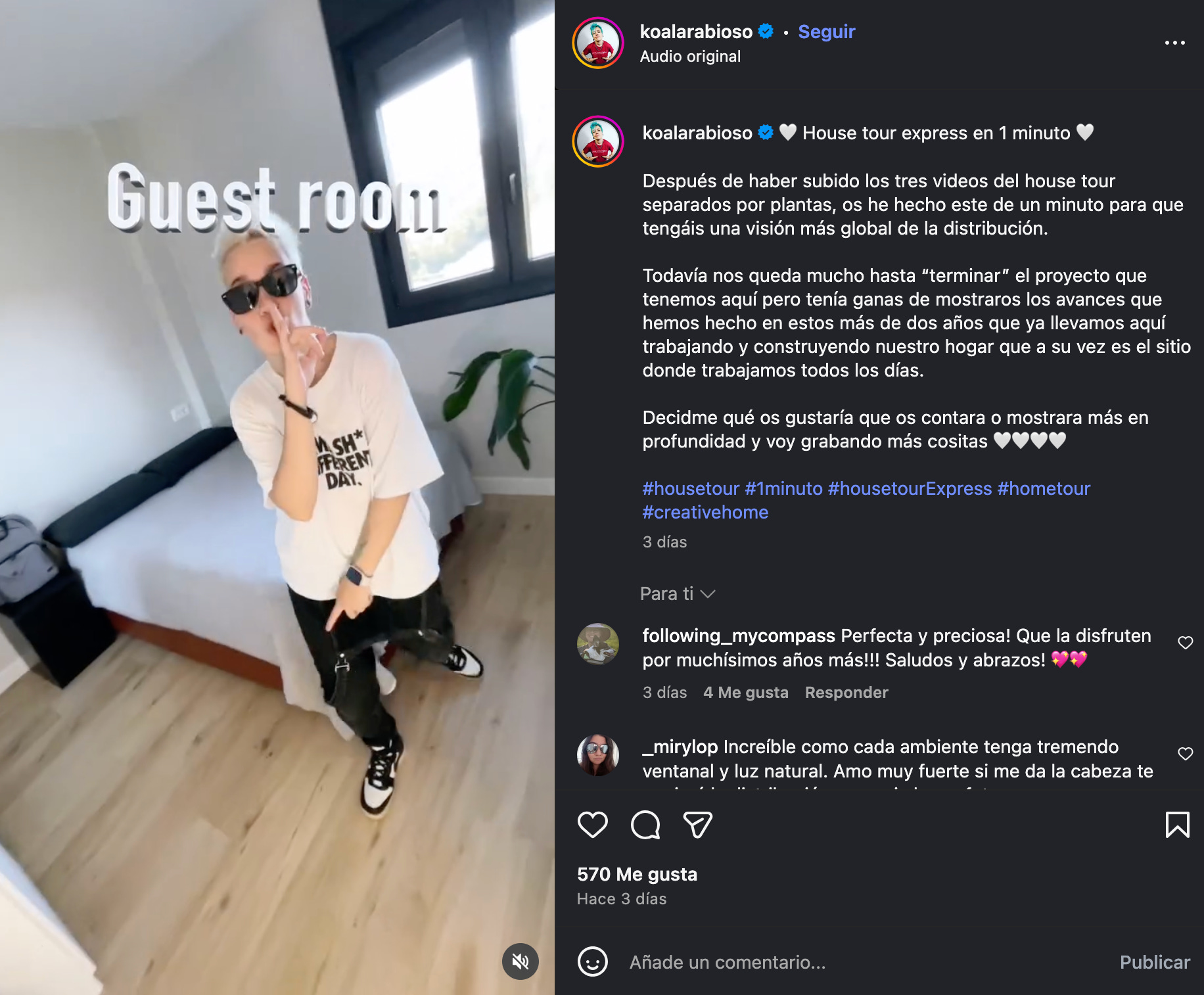 Trabajo el formato de vídeo corto que es lo que mejor funciona ahora mismo, además se agradece porque no da tantísimo trabajo como el formato largo de YouTube. Ahora mismo creo contenido enfocado en Instagram y que replico en TikTok.